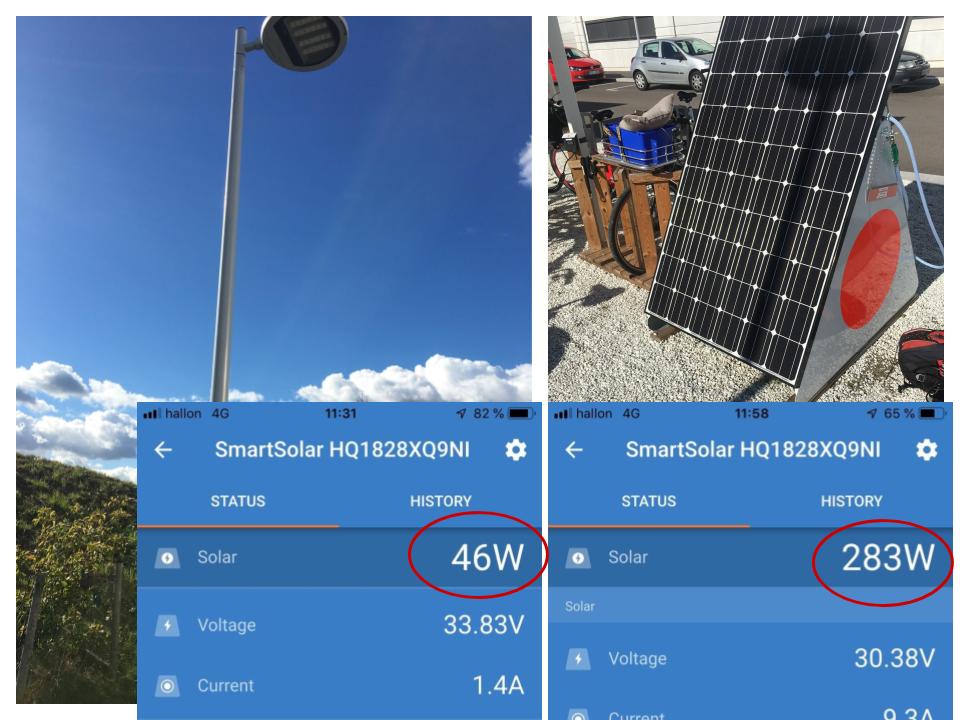 En iakttagelse angående energiproduktion är at skuggar man flera enskilda celler sjunker den totala energiproduktion drastiskt. Som i detta fallet då en smal lyktstolpe, under viss tid skapande en tunn skugga som sänkte effekten från ca 280W ner till 40 W
